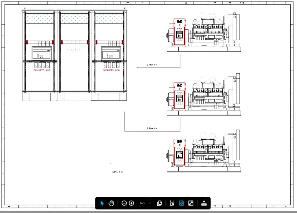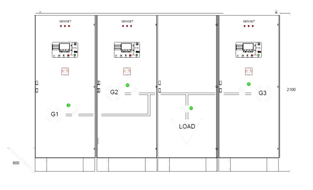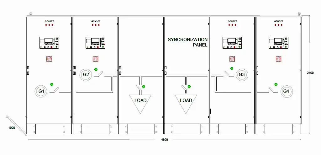 Start sinyali geldiği andan itibaren Master yani çalışma önceliği yüksek olan jeneratör çalışır. Nominal voltaj ve frekans değerine ulaştıktan sonra şalterini ortak baraya kapatır. Diğer jeneratörler Master olan jeneratörün parametrelerini haberleşme hattı üzerinden takip ederler. Gerekli şartlar sağlandığında ise kendi şalterlerini kapatarak senkronizasyon işlemini gerçekleştirmiş olurlar. Senkronizasyon işlemi tamamlandıktan sonra Transfer panosu üzerinden jeneratörler üzerinden saha beslenir. Bu noktadan itibaren sistemin gereksinimlerine göre jeneratörler arasında Reaktif ve Aktif yük paylaşımları başlar.